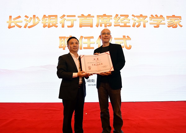 北京师范大学金融研究中心主任、教授,厦门大学及北师大博士生导师、国家外汇管理局《中国外汇》副主编钟伟,应长沙银行邀请现身长沙,出任长沙银行首席经济学家。长沙银行董事长朱玉国向钟伟颁发了聘书。钟伟长期致力于银行转轨和宏观经济分析研究,著有《国际主权债务重组机制研究》《巴塞尔协议III及操作风险管理理论》等。此次受聘成为长沙银行首席经济学家后,将成为长沙银行智囊角色,助力长沙银行发展。