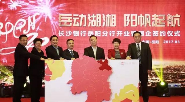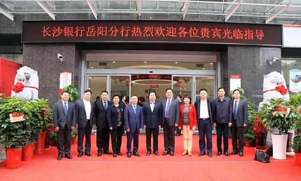 3月7日,长沙银行岳阳分行正式开业,实现了我行在湖南所有市州的全域覆盖。岳阳市委副书记、市长刘和生,市委常委、统战部长熊炜,市人大常委会副主任陈志莲,市政协副主席、市工商联主席刘晓英,市政府秘书长刘传汉,以及我行党委书记、董事长朱玉国,行长赵小中,监事长吴四龙,纪委书记、工会主席廖剑蓉,副行长胡燕军等出席开业仪式。我行总行部室、分支机构代表,岳阳分行全体员工以及部分企业客户代表参加了开业仪式。